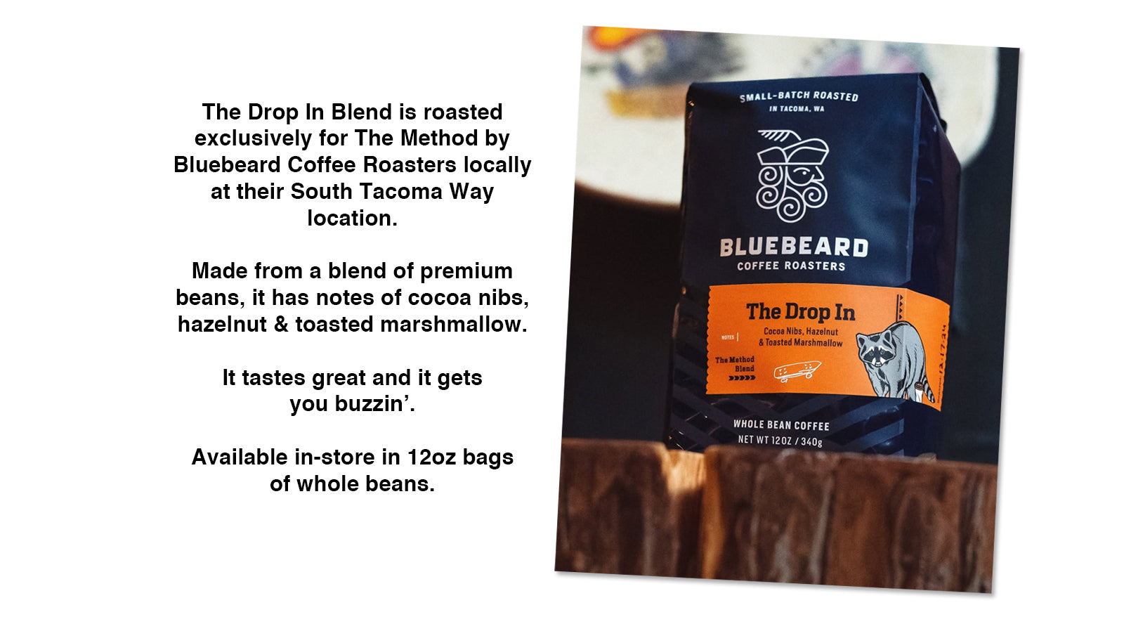 The Method proudly serves drip and espresso from Bluebeard Coffee in Tacoma.
